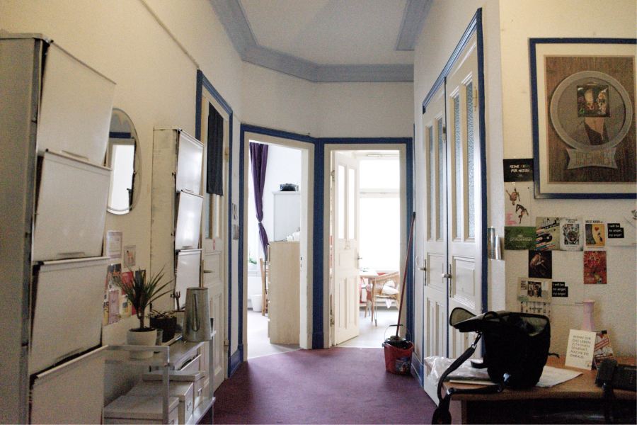 Komplettiert wird das Angebot durch die zentral gelegenen Büroräumlichkeiten, in denen es Gruppenangebote gibt, wie: Bewerbungstraining, Kochgruppe, Frühstück, Kleider-Tausch-Ecke etc.